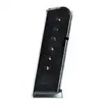 This magazine is for Rock Island's 1911 pistol and is constructed of metal with a blued finish.