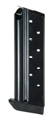 This magazine is for Rock Island's 1911 and is constructed of metal with a blued finish.