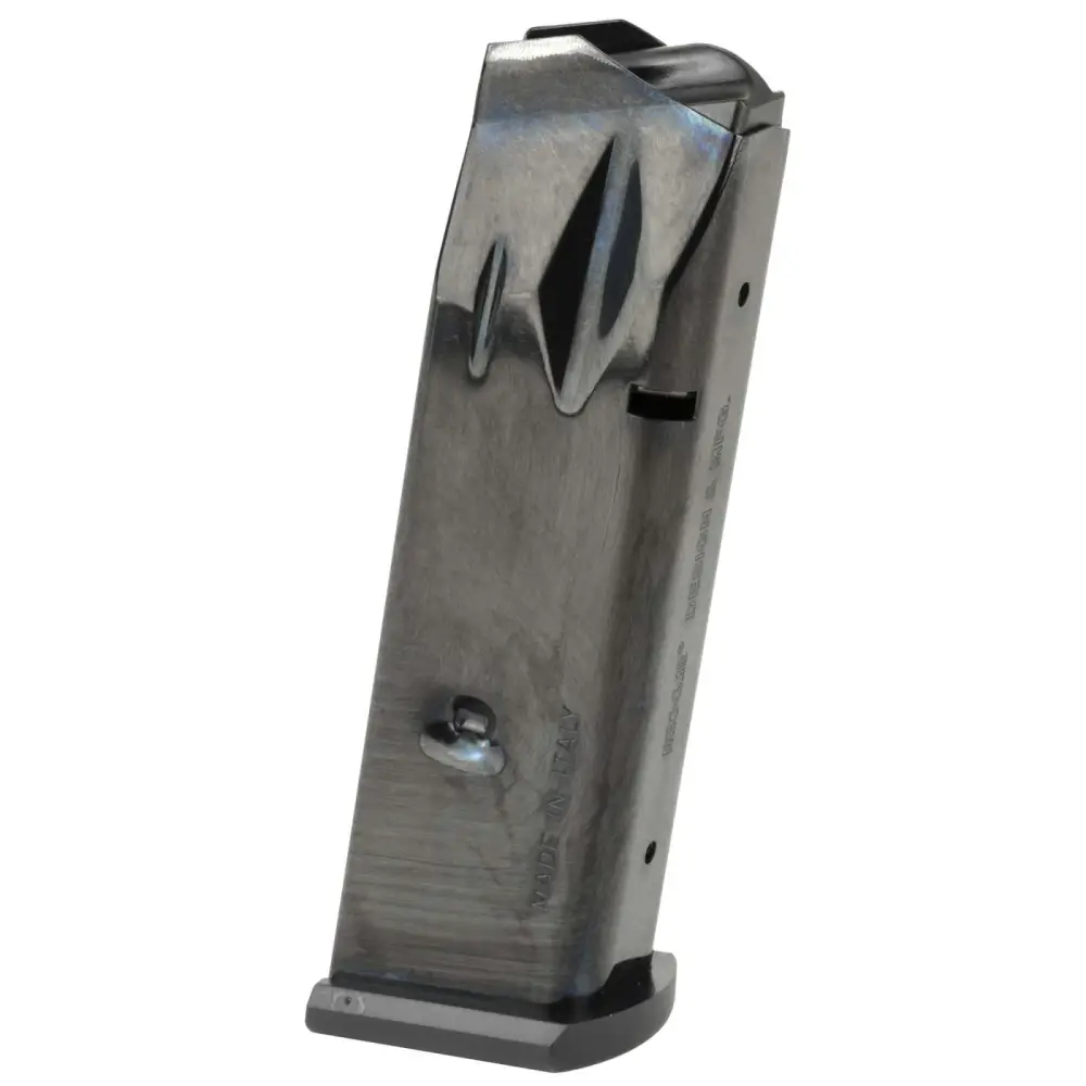 This magazine is for Rock Island's 1911 pistol and is constructed of metal with a blued finish.