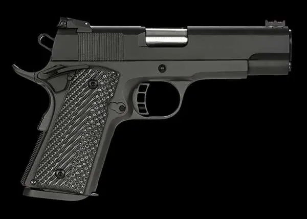 The Rock Ultra CCO combines an Officer-grip Aluminum frame with a Commander-length slide. The shorter, compact Officer-sized grip aids concealed carry and minimizes the chance of printing under a cover garment. This pistol is chambered in 45ACP with a 4.25" button rifled barrel supported by a full length guide rod. Includes a dovetail fiber optic front sight and LPA MPS1 type adjustable rear sight. Also includes skeletonized hammer and trigger with adjustable over travel stop and ambidextrous safety, which comes standard in the Rock series. The Rock Ultra CCO is finished with a tough Parkerized/Anodized coating and adds a battler ready G10 tactical grips.