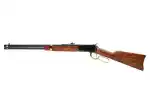 The R92 Gold boast classic western styling with flair. It comes with a premium Brazilian hardwood forearm and stock with a traditional crescent buttplate. Providing an elegant accent to the polished black receiver, barrel, and magazine tube finish are gold-finish barrel bands, hammer, trigger, and lever.