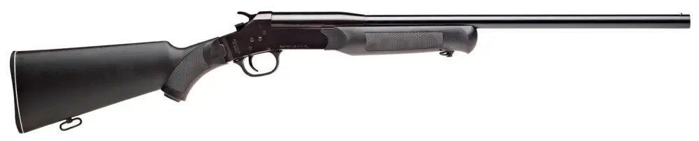This youth single shot shotgun features a carbon steel barrel, brass bead sight, and a youth polished black style finish.