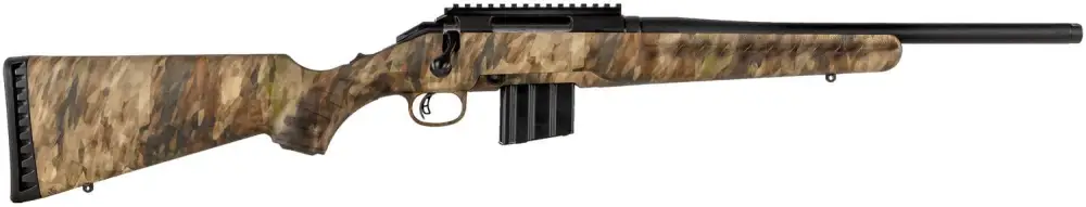 *Sports South Exclusive. The Ruger American Ranch offers minute-of-angle accuracy that can make every hunt a success. The ergonomic, lightweight synthetic stock designed for quick, easy handling blends a classic look with modern forend contouring and grip serrations with a soft rubber buttpad for maximum recoil reduction. The one-piece, three-lug bolt with 70 degree throw provides ample scope clearance and utilizes a full diameter bolt body and dual cocking cams for smooth, easy cycling from the shoulder. Patented Power Bedding, integral bedding block system positively locates the receiver and free-floats the barrel for while the Marksman Adjustable trigger offers a crisp release with a pull weight that is user adjustable between 3 and 5 pounds. Features a compact, cold hammer-forged, threaded barrel with factory installed Ruger Thread Protector; visible, accessible and easy-to-actuate tang safety provides instant security and a factory-installed, one-piece Picatinny scope base. Includes one AR Style magazine and sling swivel studs.