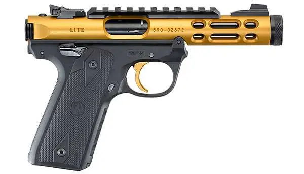 Ruger 43926 Mark IV 22/45 Lite 22 LR SAO 4.40" 10+1 Black Polymer Grip Gold Anodized Aluminum Ported Slide