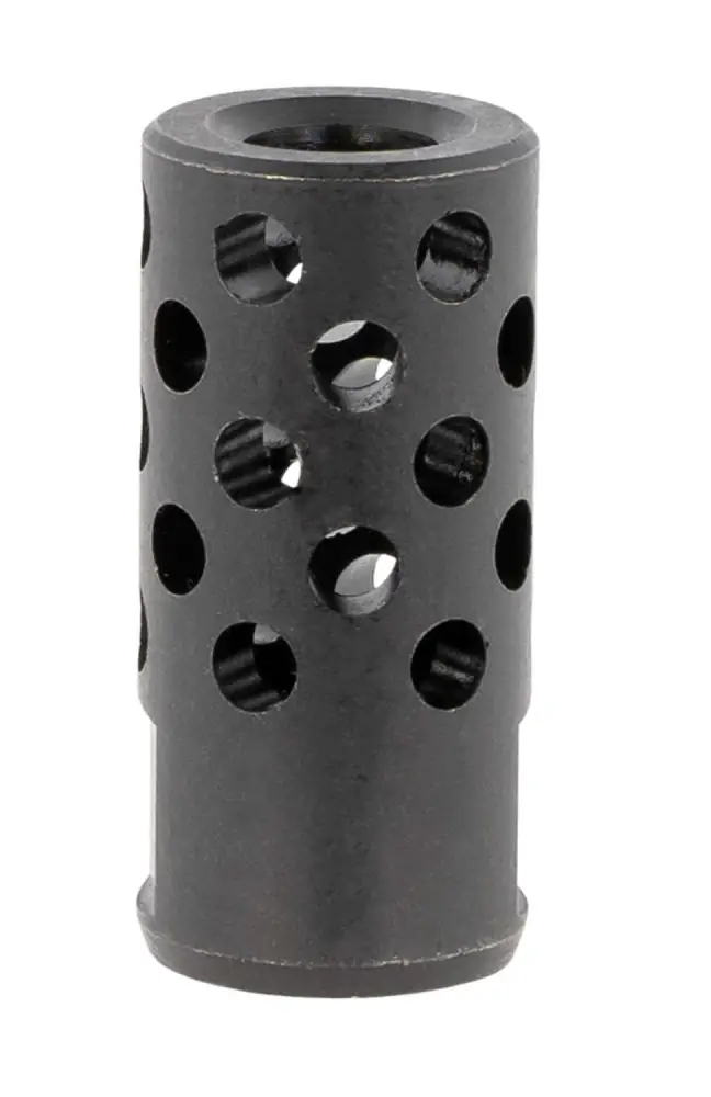Made in the USA, this muzzle brake's radial-port design reduces felt recoil and muzzle movement. Made from 4140 chrome molly steel with a black oxide finish to complement most firearms. Installs with an open end wrench or crescent wrench. Torque the brake to 15-20 ft-lbs. - no crush washers are required. It fits rifles with " x 28 threads chambered in .350 Legend including the AR-556 MPR and the Ruger American Rifle Ranch and the PC Carbine chambered in 9mm.