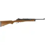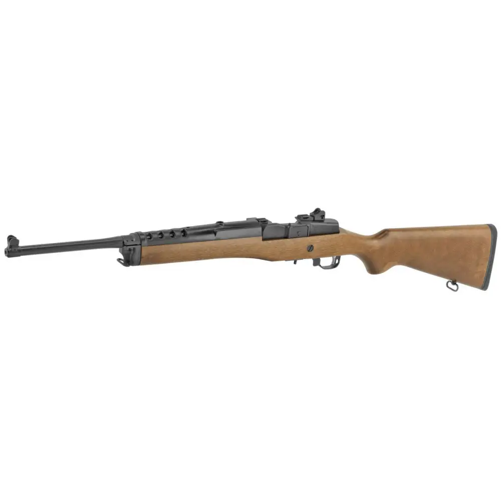 The Mini-14 Ranch rifle offers inherent accuracy and quick repeat shot capability which makes it the favorite of ranchers and outdoorsmen. Its Garand-style action with breechbolt locking system, is a fixed-piston gas system and self-cleaning which gives unparalleled reliability under harsh operating conditions. The steel receiver is drilled and tapped, has a Picatinny rail, and integral scope mounts that provides a stable mounting surface. The Mini-14 Ranch also has a cold hammer-forged barrel and ghost ring adjustable rear and blade front sights. Included are two magazines and scope rings. This model has a 18.5" blued barrel and a hardwood stock.