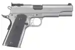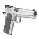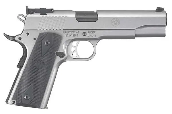 Ruger's SR1911 Target pistol goes through a precision CNC-controlled machining process that results in a superior slide-to-frame fit and smooth slide travel. The bushingless stainless steel bull barrel provides additional weight at the muzzle for improved recoil control, aided by a full length guide rod. It features a lightweight, aluminum, skeletonized trigger, skeletonized hammer, oversized beavertail grip and extended thumb safety. Accepts most standard, aftermarket 1911 parts and accessories.