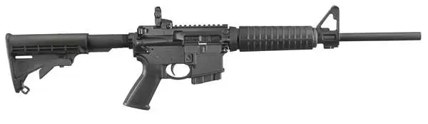 The Ruger AR-556 Model 8502 is chambered in 5.56 NATO with M4 feed ramps provide improved operational reliability. The heavy contour, cold hammer-forged barrel has ultra-precise rifling for exceptional accuracy, longevity, and easy cleaning. The 1:8 twist rate stabilizes bullets from 35-77 grains. Its upper receiver is forged from 7075-T6 aluminum and includes a forward assist, dust cover, and brass deflector. It is Type III hard coat anodized for maximum durability. It has a fixed M4-style black synthetic buttstock and Mil-Spec buffer tube. The front post sight is elevation adjustable and the A2 style"F" height allows co-witness with many optics. The rear sight is a Ruger Rapid Deploy folding sight. It provides adjustment for windage and pairs with the front sight for a solid reliable aiming system. The milled gas block is located at a carbine-length (M4) position for improved balance and handling. It comes with an ergonomic pistol grip that features an extended trigger reach for more precise control over the single stage trigger providing durable and reliable fire control and is protected by an oversized trigger guard which gives plenty of room for use with gloves. This rifle comes with one metal 10-round magazine.