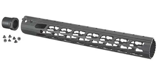 This Ruger-branded handguard provides improved clearance for larger long range scopes. The wider keymod flat at the 6:00 position provides a stable foundation for mounting bipods. It is manufactured from 6061-T6 aluminum and finished with a Type III Mil-Spec hard coat anodizing for light weight and durability. Included is a kit that comes with handguard and mounting hardware.