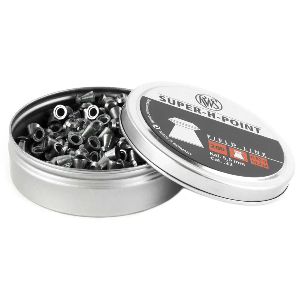 A quality field line airgun pellet, the RWS Super-H-Point pellet has a quick energy release which offers exceptional frontal deformation and strong penetration in a hollow point design. The Super-H-Point is a great small game hunting pellet for pellet rifles.