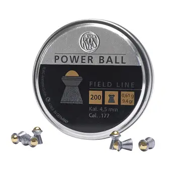 The German-made characteristics of RWS Power Ball pellets make this diabolo-shaped pellet an excellent choice for hunting small animals such as pests and varmints with a 177 caliber break barrel air rifle. Power Ball pellets are also optimum for silhouette shooting where high energy transfer is a must. The combination of the combined steel ball and lead construction of the RWS Power Ball creates a balanced pellet with consistent accuracy and excellent penetration on target. Power Ball pellets are 7.1 mm long.