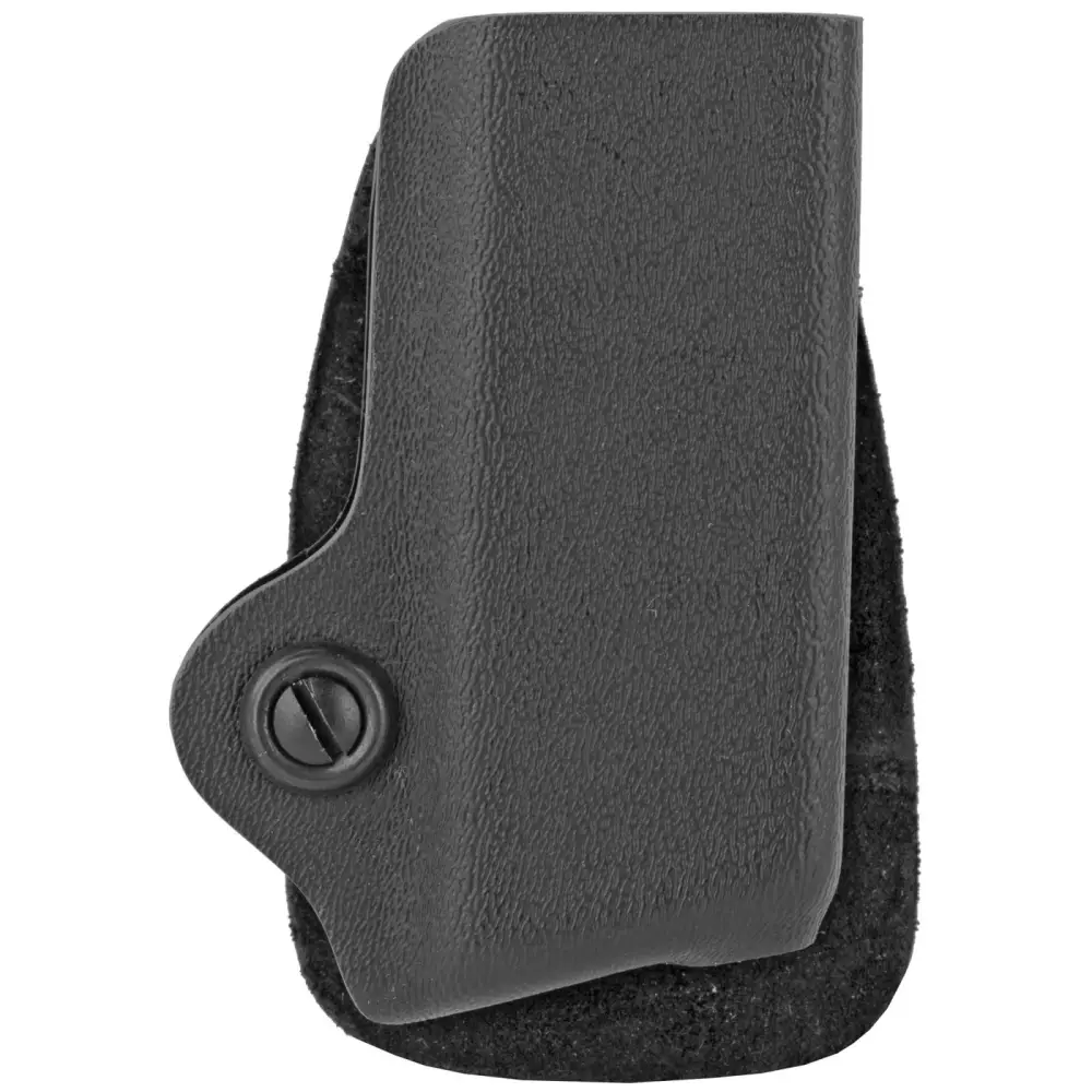 Safariland's laminate core construction and molded polymer paddle work together to make this one of the best magazine holders for quick on and off concealment situations. It features a built in locking mechanism that keeps the holder in place at all times yet it can be slipped off in an instant.