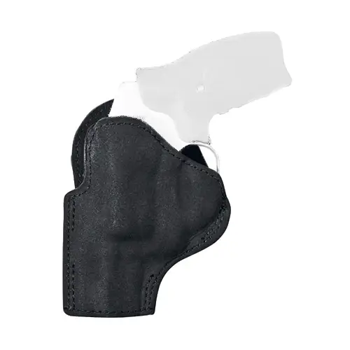 The Model 18 is an inside the waistband (IWB) holster constructed of firm SafariLaminate, allowing the holster to stay open after drawing, eliminating any fumbling while reholstering. It features a synthetic suede outer lining that grips clothing for less movement of holster. The open top design features a double snap belt loop that is adjustable for cant angle and fits both 1.25-1.5" belt widths.