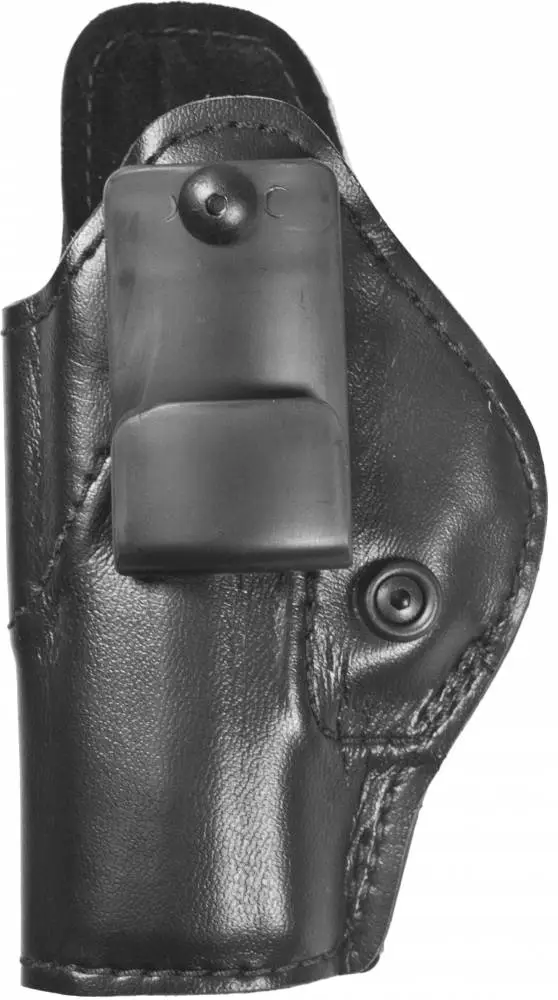 Safariland's Model 27 is an inside the pants J hook concealment holster. The unique J shaped belt hook allows the Model 27 to be worn with any belt. This open top, semi rigid SafariLaminate holster is ideal for off duty or concealed carry. A polymer insert keeps the holster open for easy weapon holstering.