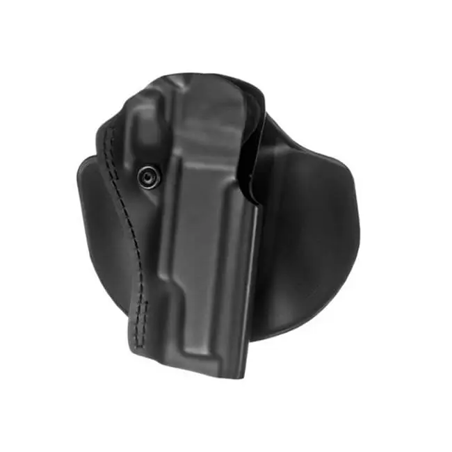The Safariland Model 5198 holster is lightweight, with low-cut sides allowing for an easy draw, and an open-top designed for defensive pistol competition. The holster is well suited for concealed carry due to its compact size. A trigger guard detent and adjustable tension device secures the gun in the holster during rigorous activity for reliable carry retention. Durable thermoformed SafariLaminate construction makes this holster tough enough for constant wear, and the STX finish keeps it looking good through years of use. The 5198 comes with both injection-molded paddle and belt loop, so you can attach and adjust carry for comfort and to match your needs.