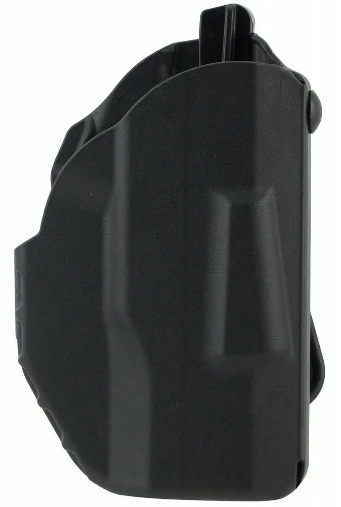 The Safariland Model 7378 7TS ALS Concealment Holster is constructed of SafariSeven, a proprietary nylon blend that is completely non-abrasive to a firearm's finish and is a paddle and belt loop combo holster. Features an open-top design without SLS for quick retrieval of weapon, ALS (Automatic Locking System) secures weapon once holstered; simple straight up draw once release is deactivated and raised stand off surfaces in holster's interior creates air space around the weapon allowing dirt and moisture to quickly clear any contact with the firearm. The 7378 7TS has a very high heat and low cold tolerance; structurally sound from 300 degrees fahrenheit to -50 degrees fahrenheit. Includes injection-molded belt loop; is user adjustable for cant and can be worn crossdraw.
