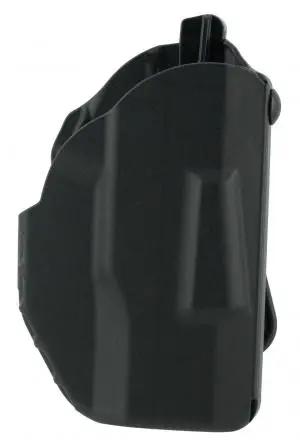 The Safariland Model 7378 7TS ALS Concealment Holster is constructed of SafariSeven, a proprietary nylon blend that is completely non-abrasive to a firearm's finish and is a paddle and belt loop combo holster. Features an open-top design without SLS for quick retrieval of weapon, ALS (Automatic Locking System) secures weapon once holstered; simple straight up draw once release is deactivated and raised stand off surfaces in holster's interior creates air space around the weapon allowing dirt and moisture to quickly clear any contact with the firearm. The 7378 7TS has a very high heat and low cold tolerance; structurally sound from 300 degrees fahrenheit to -50 degrees fahrenheit. Includes injection-molded belt loop; is user adjustable for cant and can be worn crossdraw.