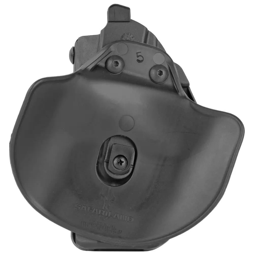 The Safariland Model 7378 7TS ALS Concealment Holster is constructed of SafariSeven, a proprietary nylon blend that is completely non-abrasive to a firearm's finish and is a paddle and belt loop combo holster. Features an open-top design without SLS for quick retrieval of weapon, ALS (Automatic Locking System) secures weapon once holstered; simple straight up draw once release is deactivated and raised stand off surfaces in holster's interior creates air space around the weapon allowing dirt and moisture to quickly clear any contact with the firearm. The 7378 7TS has a very high heat and low cold tolerance; structurally sound from 300 degrees fahrenheit to -50 degrees fahrenheit. Includes injection-molded belt loop; is user adjustable for cant and can be worn crossdraw.