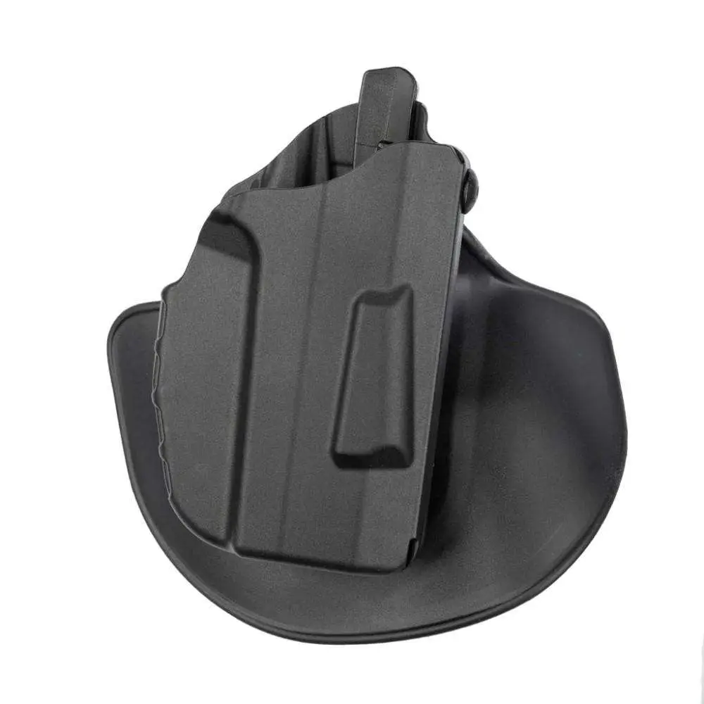 The Safariland Model 7378 7TS ALS Concealment Holster is constructed of SafariSeven, a proprietary nylon blend that is completely non-abrasive to a firearm's finish. and is a paddle and belt loop combo holster. Features an open-top design without SLS for quick retrieval of weapon, ALS (Automatic Locking System) secures weapon once holstered; simple straight up draw once release is deactivated and raised stand off surfaces in holster's interior creates air space around the weapon allowing dirt and moisture to quickly clear any contact with the firearm. The 7378 7TS has a very high heat and low cold tolerance; structurally sound from 300 degrees fahrenheit to -50 degrees fahrenheit. Includes injection-molded belt loop; is user adjustable for cant and can be worn crossdraw.