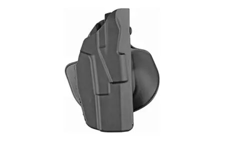 The Safariland Model 7378 7TS ALS Concealment Holster is constructed of SafariSeven, a proprietary nylon blend that is completely non-abrasive to a firearm's finish. and is a paddle and belt loop combo holster. Features an open-top design without SLS for quick retrieval of weapon, ALS (Automatic Locking System) secures weapon once holstered; simple straight up draw once release is deactivated and raised stand off surfaces in holster's interior creates air space around the weapon allowing dirt and moisture to quickly clear any contact with the firearm. The 7378 7TS has a very high heat and low cold tolerance; structurally sound from 300 degrees fahrenheit to -50 degrees fahrenheit. Includes injection-molded belt loop; is user adjustable for cant and can be worn crossdraw.