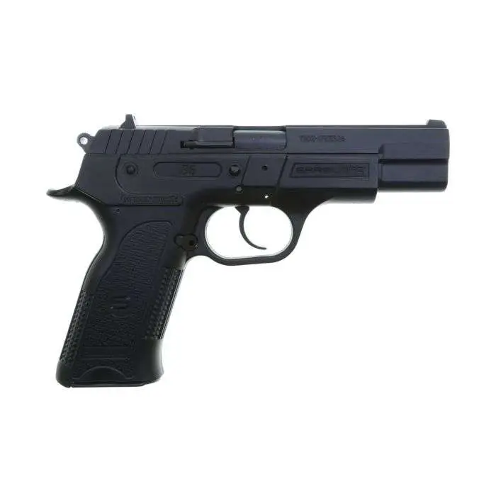 This SAR USA B6 pistol features 4.5" hammer-forged barrel, 3-dot sights, black polymer frame, black oxide slide, and has a 10-round magazine capacity.