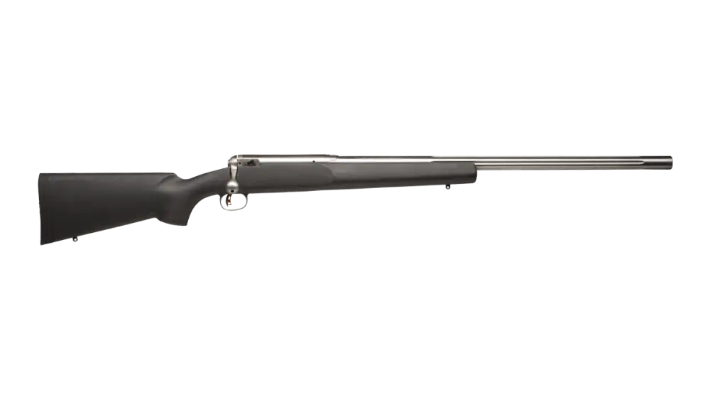 All Savage 12 Series Long Range Varmint single shot rifles feature AccuTrigger, oversize bolt handle, stainless barreled action, extra heavy free-floating button-rifled barrel, and swivel studs.