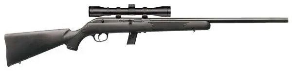 Model 64 FVXP rimfire rifle can handle everything from casual plinking to small game hunting, and are designed to meet the needs of everyone from novices to serious enthusiasts. This rifle comes equipped with a smooth-feeding, detachable 10-round magazine, a blued carbon steel barrel and a black matte synthetic stock with cut checkering and swivel studs. Included is a mounted and bore-sighted 3-9x40mm scope.