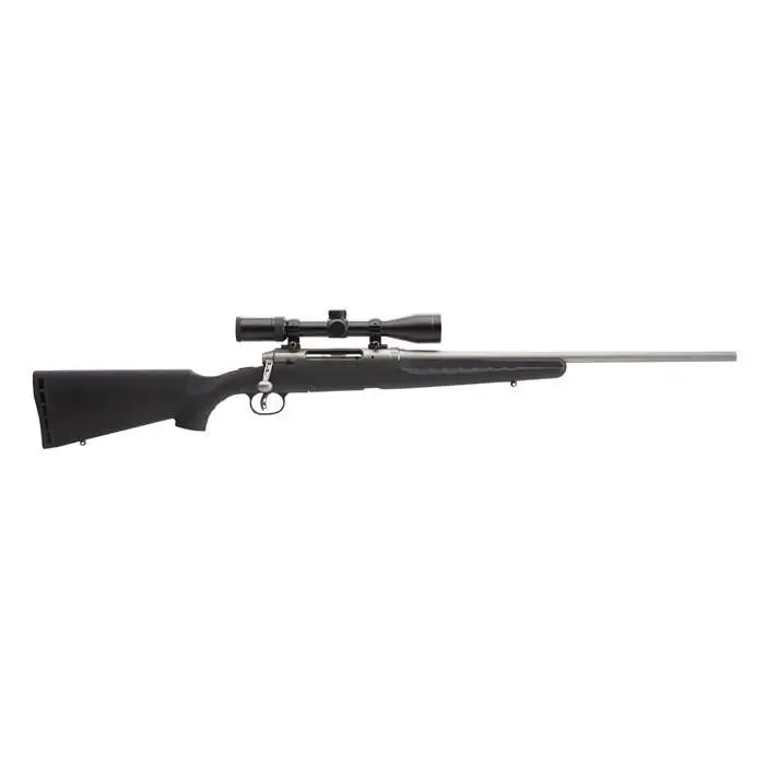 Savage Arms Axis bolt-action centerfire rifle blends affordability with unflinching performance and impressive accuracy. It sports a modern design that includes sleek contours, recoil pad vents and a textured, easy-to-control grip. It's drilled and tapped for scope mounts and offers silky-smooth bolt operation. The Axis II XP model offers amazing out-of-the-box performance. It's flush with features aimed at delivering tack-driving accuracy on every shot, including the user-adjustable AccuTrigger system, button-rifled barrel, silky smooth bolt action, detachable box magazine and thread-in barrel headspacing. This model features a stainless steel 22" barrel, black synthetic stock, and a factory-mounted, bore-sighted 3-9x40mm Bushnell scope.