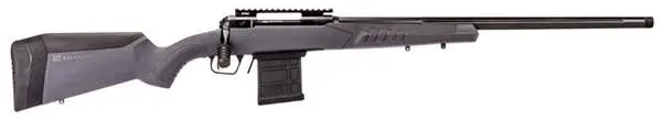 Savage's 110 Tactical model is designed for high-stakes precision and adaptability. It features Savage's AccuFit synthetic stock with five comb riser sizes for the perfect cheek-to-stock weld, four composite inserts to establish your unique length-of-pull, and AccuStock. The AccuStock consists of a rigid rail system firmly embedded in the stock throughout the forend of the rifle. It also engages the action three dimensionally along its entire length. The 110 Tactical also features AccuTrigger for flexibility, a suppressor ready carbon steel barrel, soft grip fore-end and pistol grip, a one-piece 20 MOA rail, and a detachable box magazine. This 6.5 Creedmoor model has a 24" matte black heavy barrel with threads. It also has a gray finish stock.
