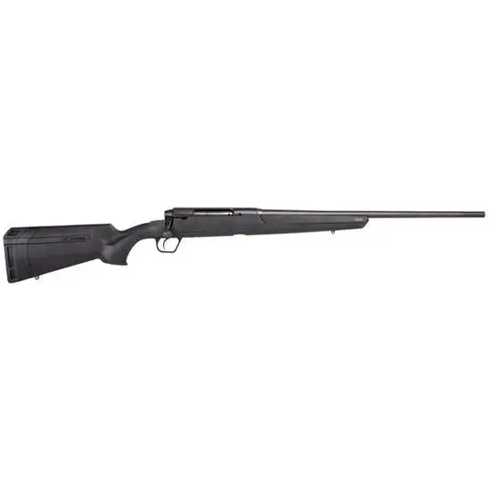 The Savage Axis has been rated best-in-class entry level rifle. It has a modern design with silky-smooth bolt operation, a detachable box magazine, and matte black synthetic stock. Its receiver is drilled and tapped for scope mounts. This 30-06 Springfield model has a 22" matte blued carbon steel barrel with a sporter profile.