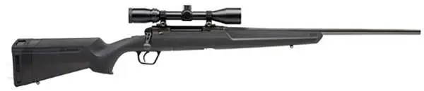 Savage Arms Axis bolt-action centerfire rifle blends unflinching performance and impressive accuracy. It sports a modern design that features sleek contours, recoil pad vents and a textured, easy-to-control grip. The Axis also features a carbon-steel barrel, a black synthetic stock, a drilled and tapped receiver, and offers silky-smooth bolt operation. This 25-06 Remington model has a matte blued 22" barrel and includes a mounted and boresighted 3-9x40mm Weaver scope.