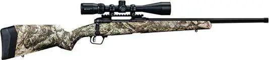 Savage's 110 Predator model delivers a customized fit required for consistent accuracy. It features Savage's AccuFit synthetic stock with five comb riser sizes for the perfect cheek-to-stock weld, four composite inserts to establish your unique length-of-pull, and AccuStock. The AccuStock consists of a rigid rail system firmly embedded in the stock throughout the foreend of the rifle. It also engages the action three dimensionally along its entire length. The 110 Predator also features AccuTrigger for flexibility, a carbon steel barrel, soft grip fore-end and pistol grip, and a detachable box magazine. This 2308 Winchester Apex model has a 20" matte black barrel with a threaded end cap. It also has a Mossy Oak Mountain Country camo stock and a Vortex Crossfire 4-12x44mm scope.