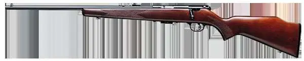 The 93 G features Savage's AccuTrigger, a crisp, clean trigger that adjusts down to approximately 2.5 pounds. This model has a blued carbon steel barrel, walnut-stained hardwood stock with cut checkering, a detachable box magazine and a two-position safety immediately behind the bolt handle. Its receiver is drilled and tapped for scope mounts and has open sights.