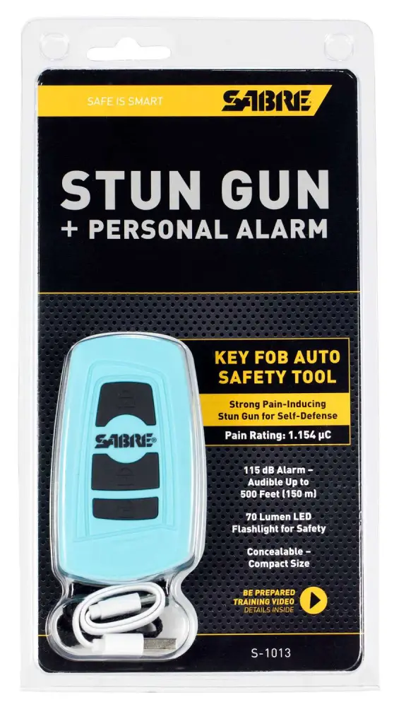 The compact, discreet design conveniently attaches to any key ring, for maximum portability, and the wrist strap also makes this stun gun readily accessible. Featuring a 115 dB alarm that helps call for assistance in an emergency and helps deter attackers, audible up to roughly 500 feet (150 m) away. The 70-lumen LED flashlight helps you illuminate your way to safety. And the 1.154 microCoulombs will stop the attackers right in their tracks.