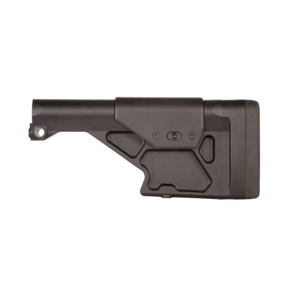 Featuring an adjustable cheek rest and recoil pad, the ProComp 10x is a precision rifle stock designed for all AR platforms. Cheek piece adjustments are accomplished by utilizing a dual push button and clamping system which securely locks the cheek piece to the shooters desired height. The recoil pad is adjusted via spacer system and each stock comes with two 1/4 spacers. The 10x is intended to act as a stable link between shooter and rifle to ensure that confidence is paired with each shot. It mounts to rifle-length receiver extension tube and has three anti-rotation QD sling swivel mounts.
