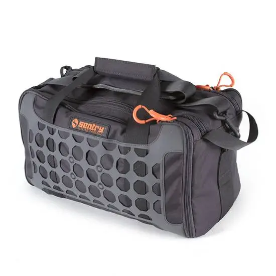 The Sentinel Pistol Range Bag is ideal for a trip to the range with up to three guns. The dual zipper panel allows for easy access to 1020 cubic inches of storage space and the movable dual dividers allow for easy organization of weapons, ammo and gear. Two external pouches are for storage of cleaning supplies, ammo and accessories. Includes patent pending 1080 technology mounting panel on front pocket to securely mount pouches, tools or accessories in horizontal, vertical or diagonal orientation.