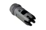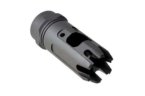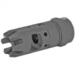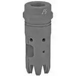 The Strike Industries Mini King Comp 9mm brings the proven performance of the full-size King Comp in a more compact, lighter package designed exclusively for 9mm carbines. The Mini King Comp retains the full range of features of the King Comp in a single chamber format. The large single baffle captures the vented gasses for recoil mitigation. The redirection jets work to stabilize the muzzle end for faster follow up shots while dampening felt concussion on the shooter end to maintain the pleasant shooting characteristics of 9mm carbines. The end of the compensator features the crown of standoff/wire cutting tines that gives the compensator its name.