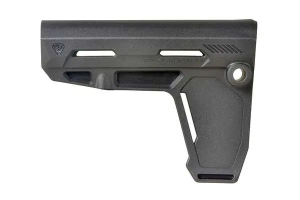 Strike Industries' AR Pistol Stabilizer is sleek, ultra-lightweight, and rock solid. The entire stabilizer was designed to be ergonomic and comfortable along all planes. The overall design eliminates any snag hazards and abrasion zones resulting in a comfortable cheek-weld and stabilizing interface. Utilizing a large tapered set screw used to securely lock it in place at different positions, the pistol stabilizer can fit on pistol buffer tubes up to 1.25" in diameter. Additionally the stabilizer comes with built-in ambidextrous QD cups for expanded sling mounting options.