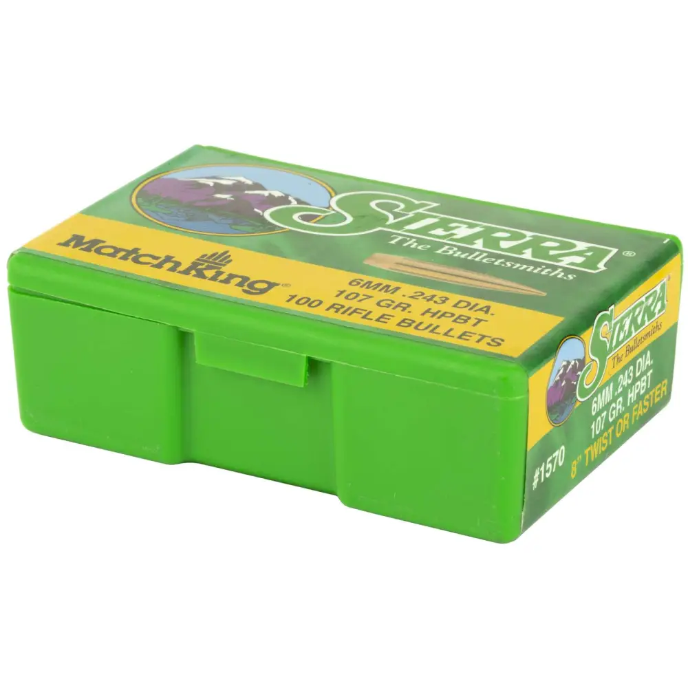 MatchKing Bullets are Sierra's pre-eminent target bullets. The driving motivation for the design of each MatchKing bullet is accuracy. These bullets have very thin jackets drawn to an exacting concentricity standard of 0.0003 in maximum variation and their weight is held to within -+0.3 grain. All MatchKing have a hollow point design with a very small meplat for high ballistic coefficient. The majority of these bullets have a boat tail shape to further minimize drag and improve ballistic coefficient. Although some of these bullets have been used for hunting, Sierra recommends them only for target shooting.
