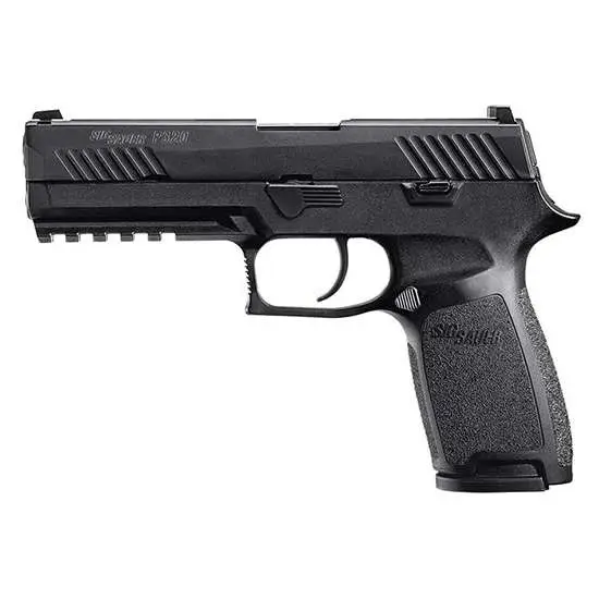 Sig's pistols are engineered to perform anywhere, at any time, and under any circumstance. They boast unique, advanced features that stand out among the rest. The P320 is a striker-fired modular, polymer-framed service pistol designed from the ground up with the input of law enforcement officers. It offers a smooth, crisp trigger, an intuitive, 3-point takedown and unmatched modularity to fit any shooter and any situation. The P320 also has ambidextrous slide catch lever and a reversible magazine release for full ambidextrous operation. The P320 Full Size model features a stainless steel frame and slide, and a M1913 Picatinny rail. This model has a black frame and slide, 4-point safety, contrast sights, and comes with two 10-round magazines. The slide also has a nitron coating.