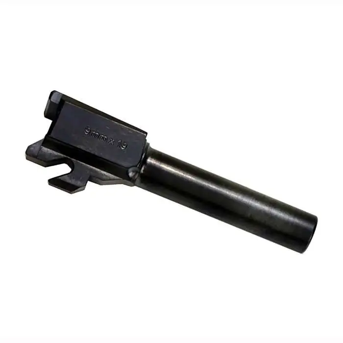 Chambered in 9mm, this barrel is meant to fit with the P320 Compact model. The barrel can be replaced easily and conveniently by simply ensuring the firearm is unloaded, removing the slide from the receiver and grip module, and sliding out the existing barrel.