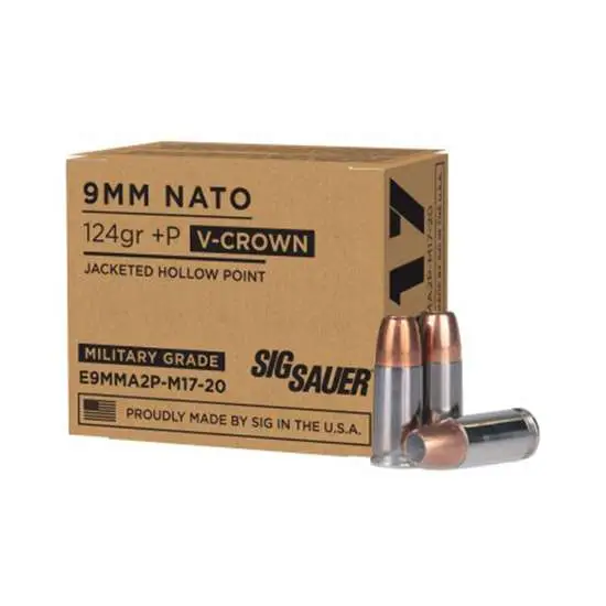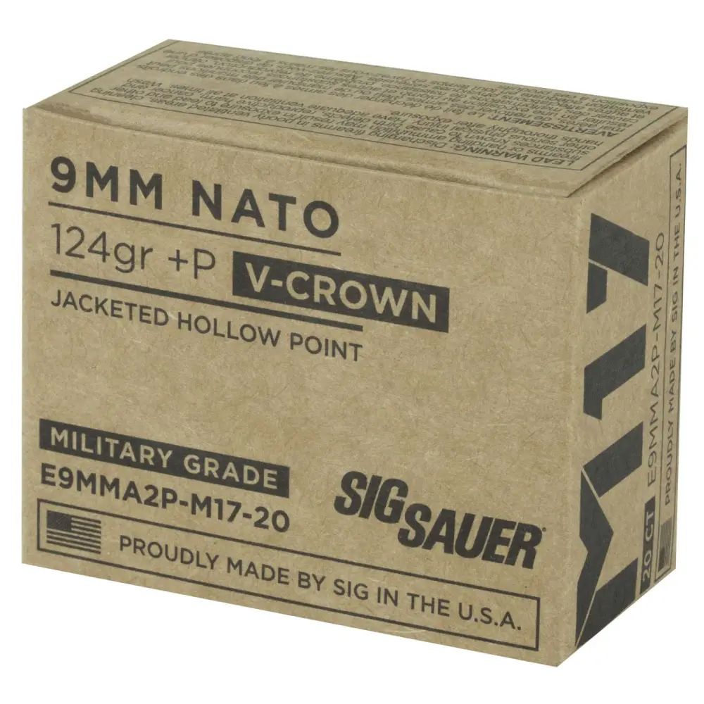 SIG V-Crown defensive rounds combine perfected material specifications and fine-tuned design innovations, including a stacked hollow point cavity, to deliver exceptional on-target energy with maximum weight retention and optimal expansion for ultimate stopping power. This load is compatible with M17.