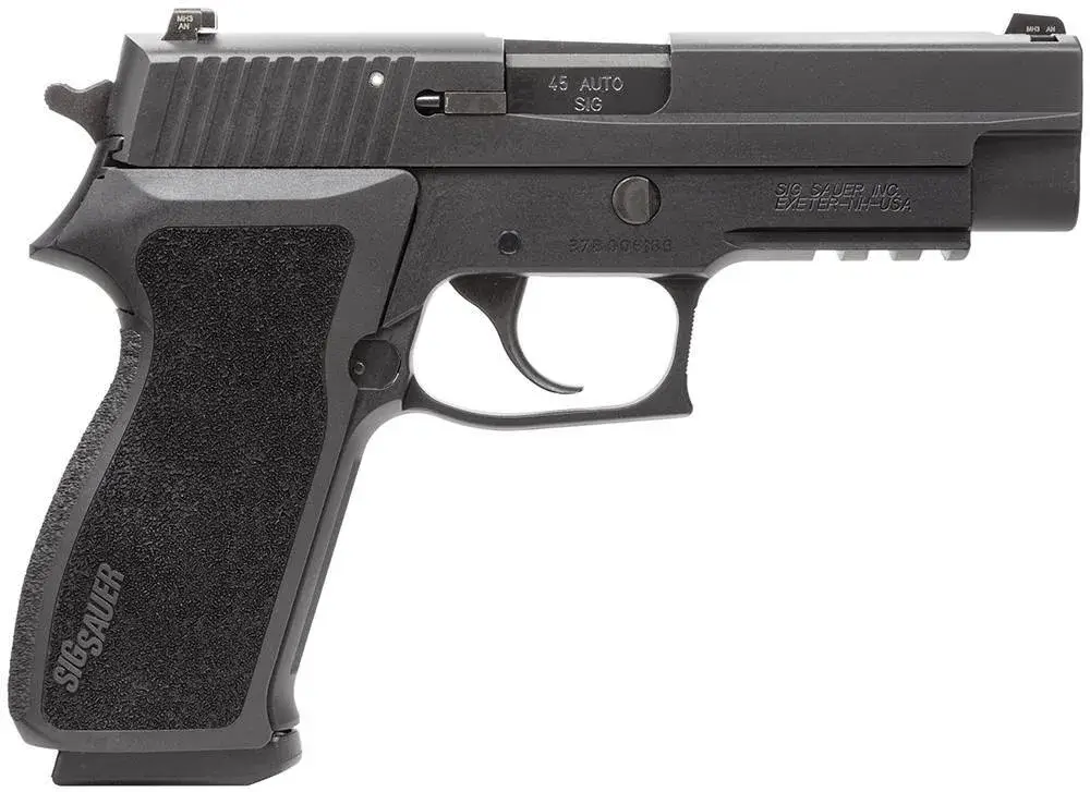 The P220 is built to meet and exceed rigorous military standards. It features a stainless steel slide coated with a durable, wear-resistant Nitron finish, and a light-weight alloy frame with integral accessory rail.