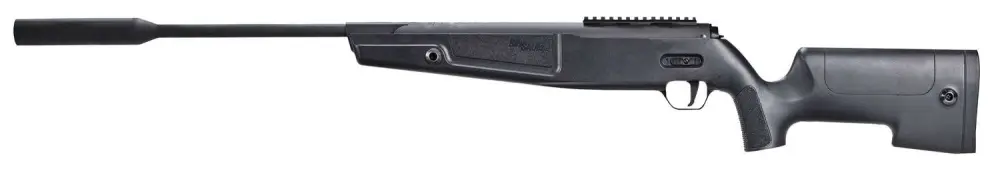 Sig Advanced Sport Pellet rifle is matched to original rifle model specs and engineered to Sig quality standards using authentic materials and, where necessary, patented performance innovations. The ASP20 is a suppressed single-shot, Advanced Sport Pellet (ASP) air rifle delivers down-range power and accuracy with the lightest cocking effort in its class, making it ideal for hunting small to medium game. This model has a black synthetic stock and is chambered for .177 pellet.