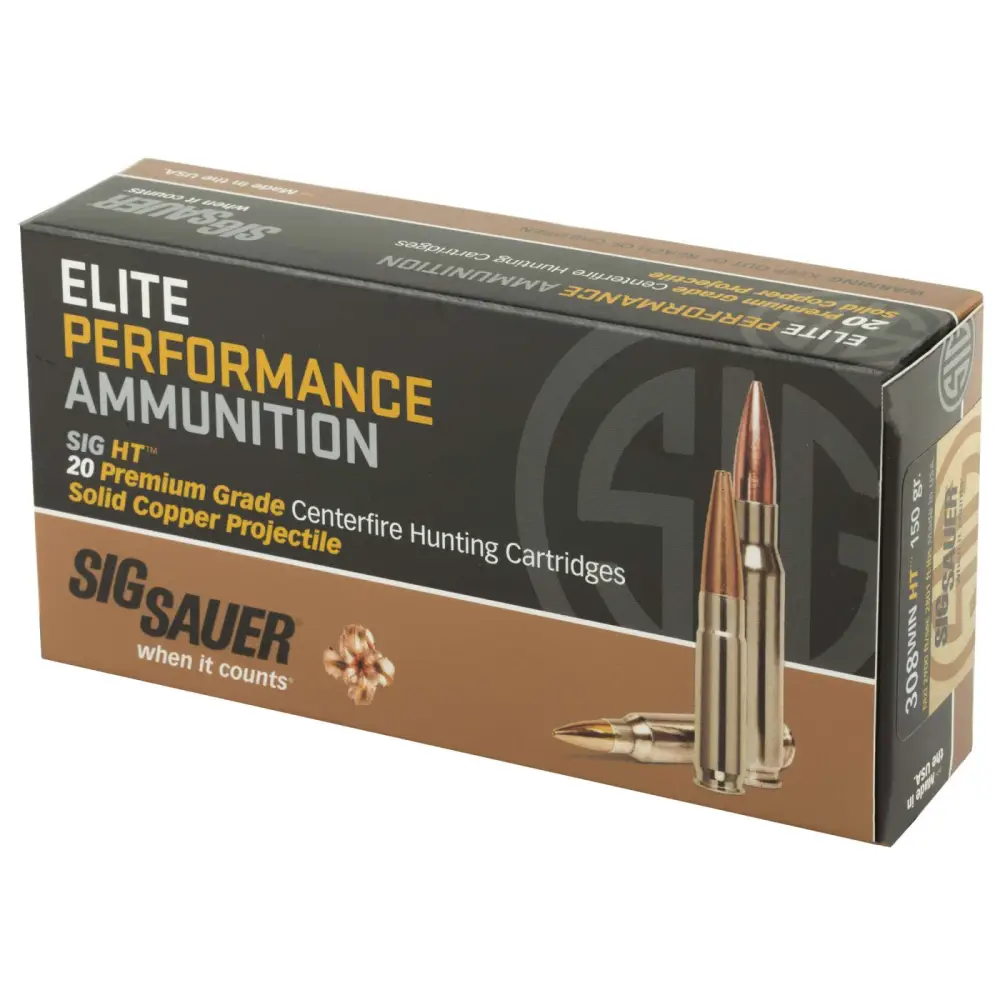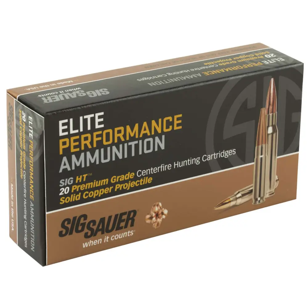 SIG Elite Hunting Copper rounds use premium-quality powders and primers for minimum velocity variation and yield a 1.8x diameter expansion. Perfected for easy rifle feeding, with an optimized nose geometry, and premium nickel-plated shell casings that deliver consistently reliable accuracy for taking down game.