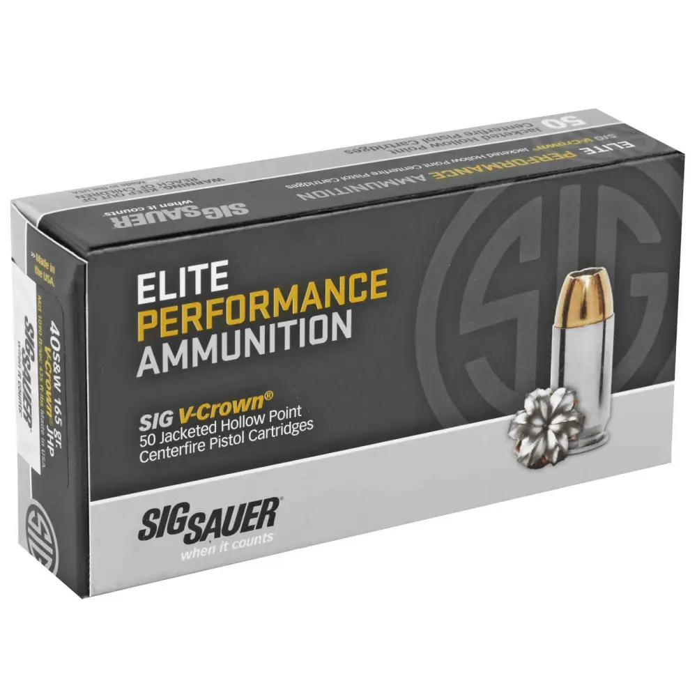 Sig's revolutionary V-Crown jacketed hollow point centerfire ammunition, engineered for reduced recoil and optimal performance in short barrel, concealed carry pistols.