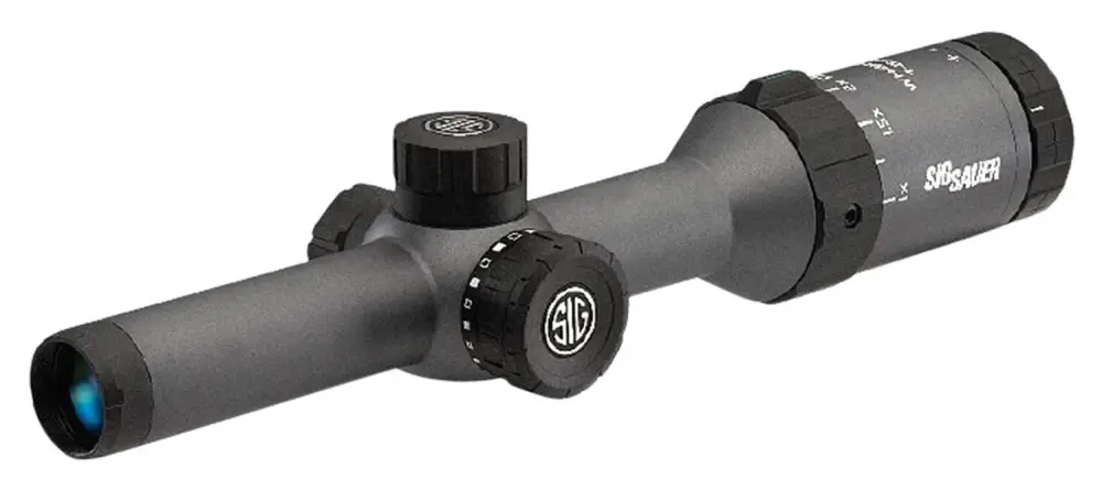 Sig Sauer Electro-Optics SOW51011 Whiskey5 1-5x 24mm Obj 100.4-20.2 ft @ 100 yds FOV 30mm Tube Black Finish Illuminated Hellfire Quadplex