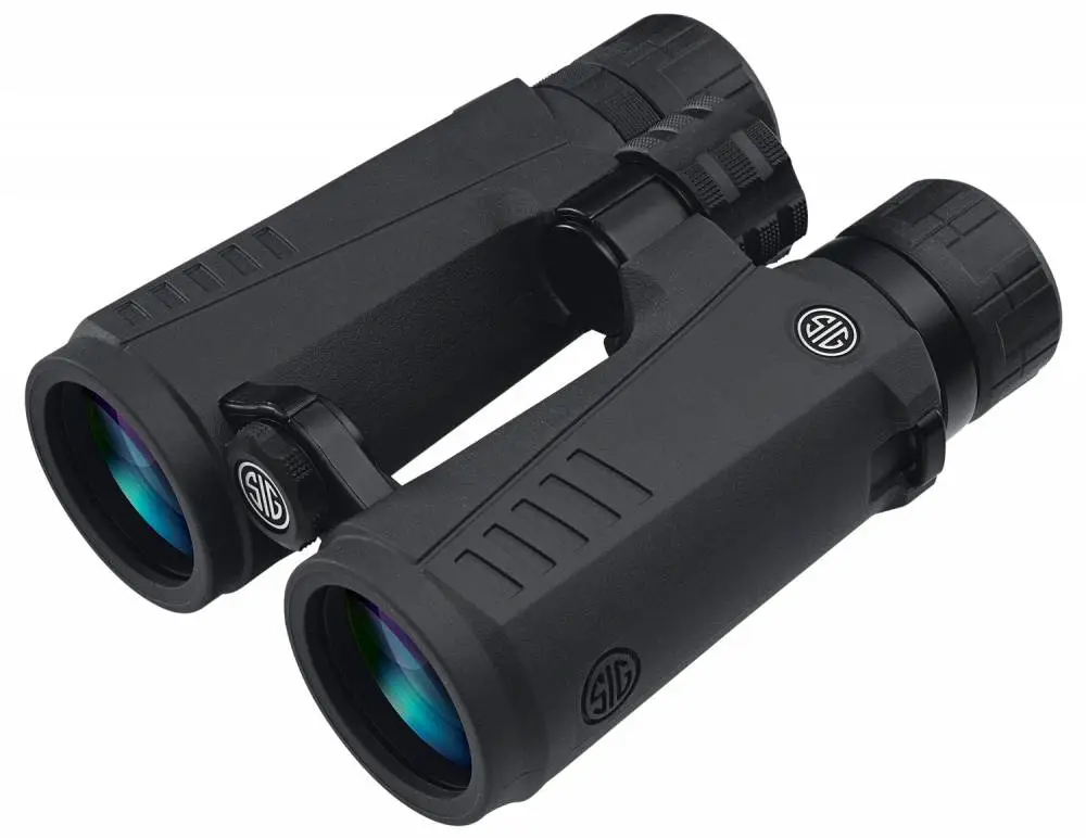 Sig's Zulu5 HD Binocular offers outstanding High Definition performance. Created to meet the demanding requirements of professional hunters and guides around the world, the Zulu5 provides rugged reliability in the field in all weather conditions while delivering razor-sharp resolution and superior light transmission. Its High Definition (HD) glass offers superior clarity and color correctness, while the silver deposition phase-coated BAK4 prisms with dielectric mirror coating delivers unmatched resolution and image contrast. The fully multi-coated lens system offers a bright and vivid image, Spectracoat a highly efficient, anti-reflection lens coating and Lensarmor abrasion-resistant lens coating. The lightweight and durable magnesium alloy body features a durable rubber armor, multi-position twist-up eyecups, and waterproof/fog-proof performance. It includes lens covers, deluxe neck/shoulder strap, lens cloth, and padded ballistic nylon case. This model has a 12x magnification with a 50mm objective.