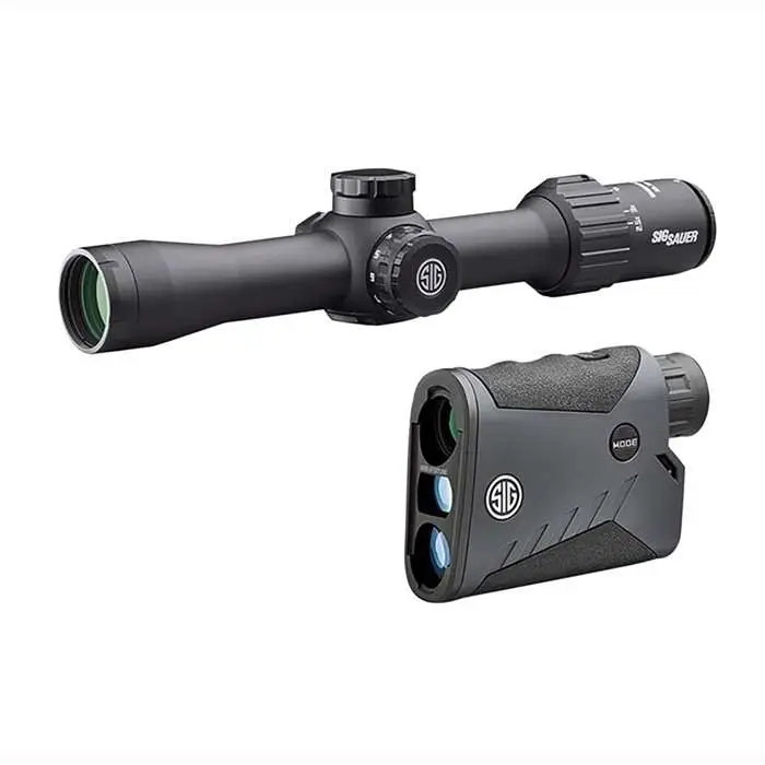 The BDX rangefinder and riflescope system is simple, fast and intuitive. The Kilo rangefinder features a Lightwave DSP digital rangefinder engine, Hyperscan with four times per second scan rate, RangeLock and the Lumatic auto-adjusting display. The Sierra3BDX riflescope 2.5-8x32mm utilizes HD glass for superior resolution and optical clarity, a 30mm tube and LevelPlex digital anti-cant system. The BDX-R1 Digital Ballistic Reticle is the evolution of holdover, providing a ballistic solution out to 800 yards with 1 MOA of accuracy. Download the SIG BDX app for Android or iOS smartphones, pair the Kilo BDX rangefinder and Sierra3BDX riflescope, set up a basic ballistic profile and you're ready to shoot or hunt. Once you are in the field, range your target and the KILO BDX rangefinder will utilize onboard Applied Ballistics Ultralight to instantly send your info to the scope via Bluetooth. Using your basic ballistic profile, the ballistic solution is calculated for your target and will instantly illuminate on the BDX-R1 Digital Ballistic Reticle with windage and elevation holds in the Sierra3BDX riflescope. A blue LED on the riflescope power selector indicates that the BDX system is paired, and when the reticle has received new ballistic holdover and windage data from the rangefinder.