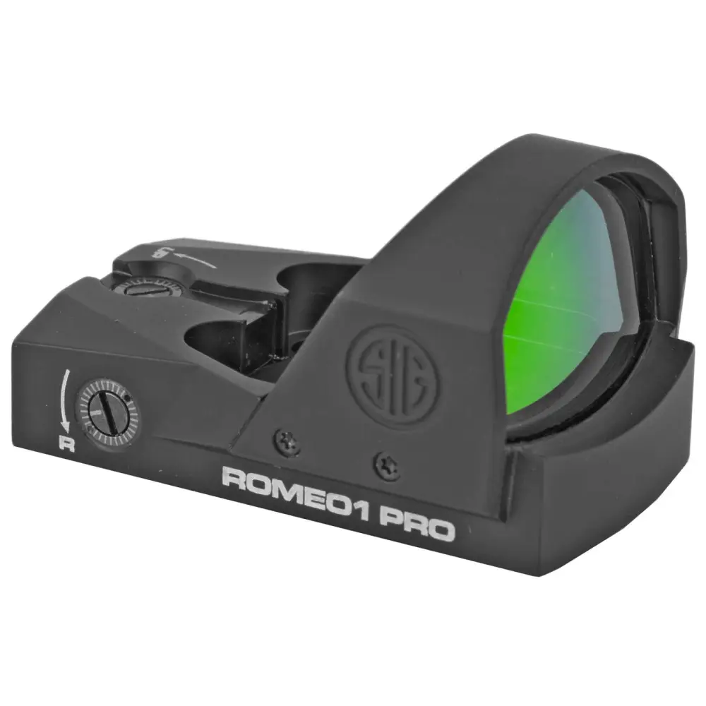 Designed for fast, responsive target acquisition and accuracy, the Romeo1Pro miniature open-reflex red dot sight was engineered to withstand the punishment of harsh environments. With an upgraded emitter for superior brightness and outstanding battery life, the Romeo1Pro is capable of mounting to any Sig Sauer pistol or any other pistol machined to accept the Romeo2/Pro reflex sight interface and mounting hole spacing using the included M4 mounting screws. It features molded glass aspheric lens, 3 MOA red dot, TruHold Lockness Zeroing System, MOTAc, and comes with a protective steel shroud.